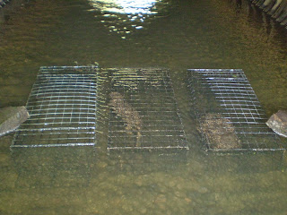 Independent of each other, these swim through cages can be set side by side anywhere, no matter what the bottom. The cage wire separates the two, making them independent of each other, able to make a catch without moving, shifting or effecting the other trap. In fact, where streams or runs are wide, there is no limit to how many may be set touching or nearly touching, two, three, four…