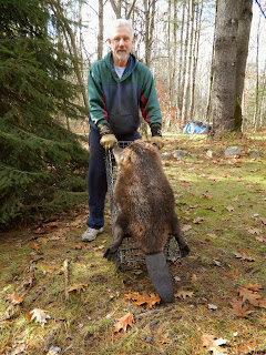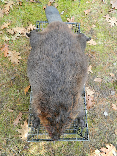 60+ Pound Beaver taken in a 12x15x36 Comstock Swim Through Double Powered Door Cage. As you will notice, the beaver is almost as large as the cage. This trap recently took a 50 pounder. Fifty pound beaver measure about 32 inches from the tip of the nose to the base of the tail. The body length of the 60 appears to be a bit longer than the 50 pound beaver, 33 1/2 inches from nose to base of his tail. I’m always amazed at the effectiveness of these cage traps since the overall length of the beaver is about 44 inches, 8 inches longer than the trap!