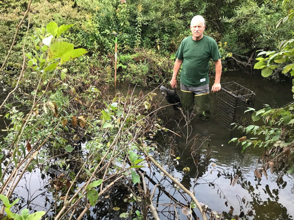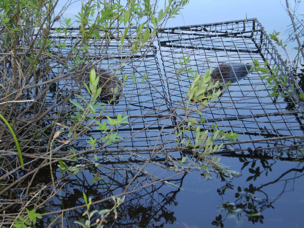 What I have found to be very effective in beaver trapping with Comstock Cage Traps is basically covering an entire